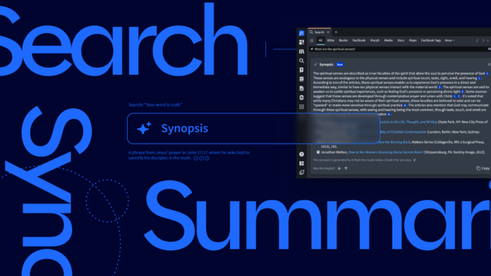 If you need help finding a passage or topic for study, the new AI-assisted Smart Search can help. This shows up in both All Search and Books Search. Use natural language to search instead of complicated Boolean searches. You’ll get what Logos calls a synopsis of the most important information found. With one click the program’s AI tools will summarize the results.