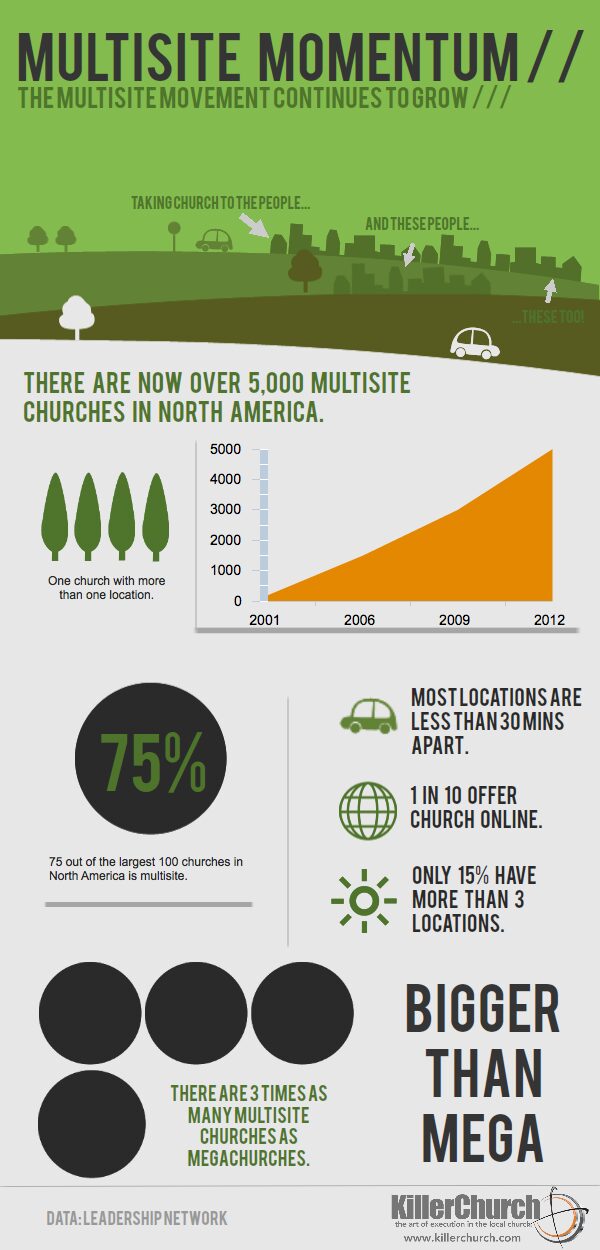 There are now some 5,000 multisite churches around the U.S. — that’s more than 10,000 unique church locations. Many of these 10,000 campuses are linked to one another every Sunday morning by a single connection: video screens. These video campuses broadcast the sermon being preached at another campus.