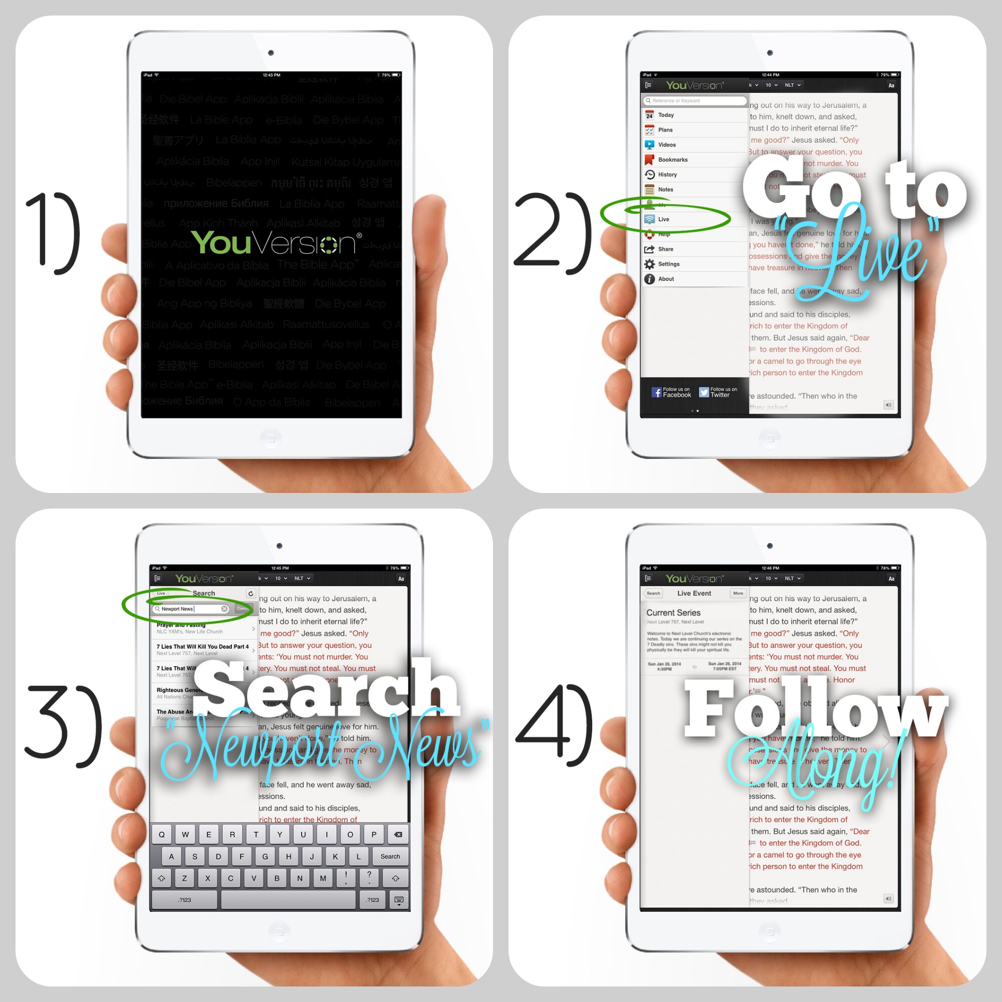 A few months ago, a pastor friend of mine introduced me to the “Live” feature on the app, YouVersion. I use YouVersion every single day to read my Bible, but I did not know about this feature.